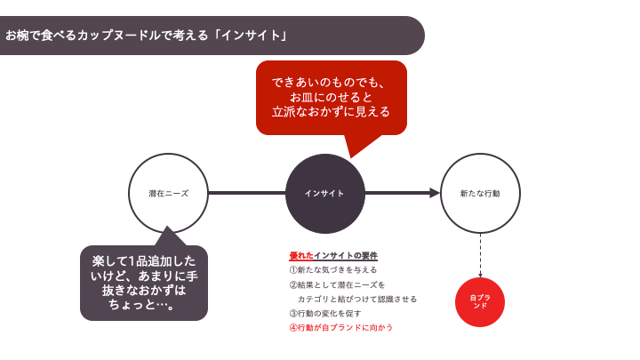 話がすこし逸れてしまいましたが、言いたかったことは、自社のプロダクトで解決可能なことと、潜在ニーズを結びつけようということです。そして、潜在ニーズと自分たちのプロダクトを結びつけるために登場するのが、みんな大好き「インサイト」なのです。