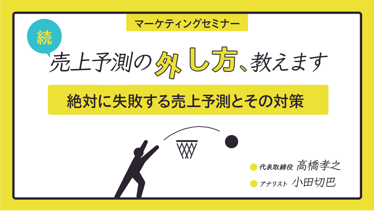 売上予測を絶対に成功させる方法論はありませんが、絶対に外れる方法は一般化できます。本セミナーでは、これまでの数々の売上予測の失敗談を対談形式で語りながら、その経験から導き出された、失敗を招く要素をお話しします。売上予測の失敗パターンを知ることで、予測を成功させるためのヒントをご理解いただけます。